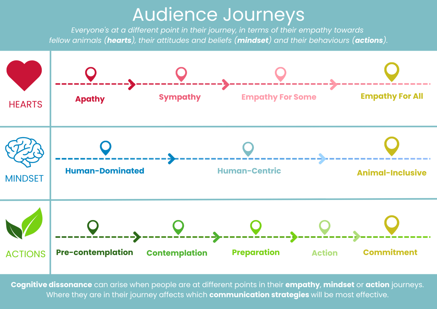 For people further ahead in their journey – already questioning society’s relationship with other animals and contemplating change – “Go vegan” is an invitation to align actions with values.