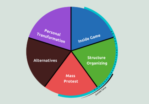 Personal transformation can build a base of committed allies. Mass protest and community organising can generate momentum and public attention. Inside-game tactics can translate pressure into policy and institutional change. Creating alternatives can demonstrate what is possible. And structure organising can build the leadership and infrastructure that sustains everything else. These approaches are interdependent – movements need all of them.