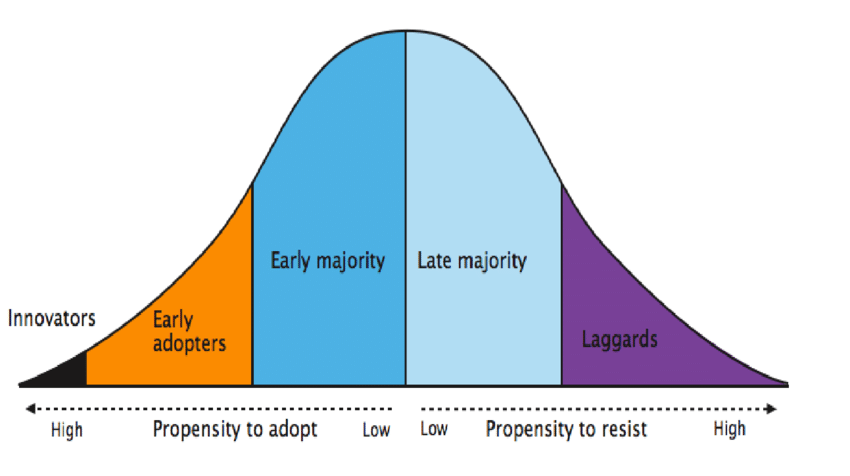 Innovators (approx. 2.5% of a society) are the risk-takers who will adopt change regardless of social costs.